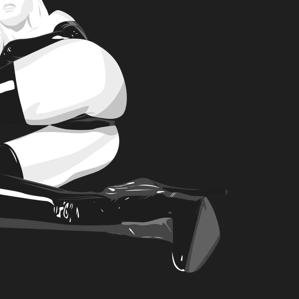 Cuir luisant, jambes fières